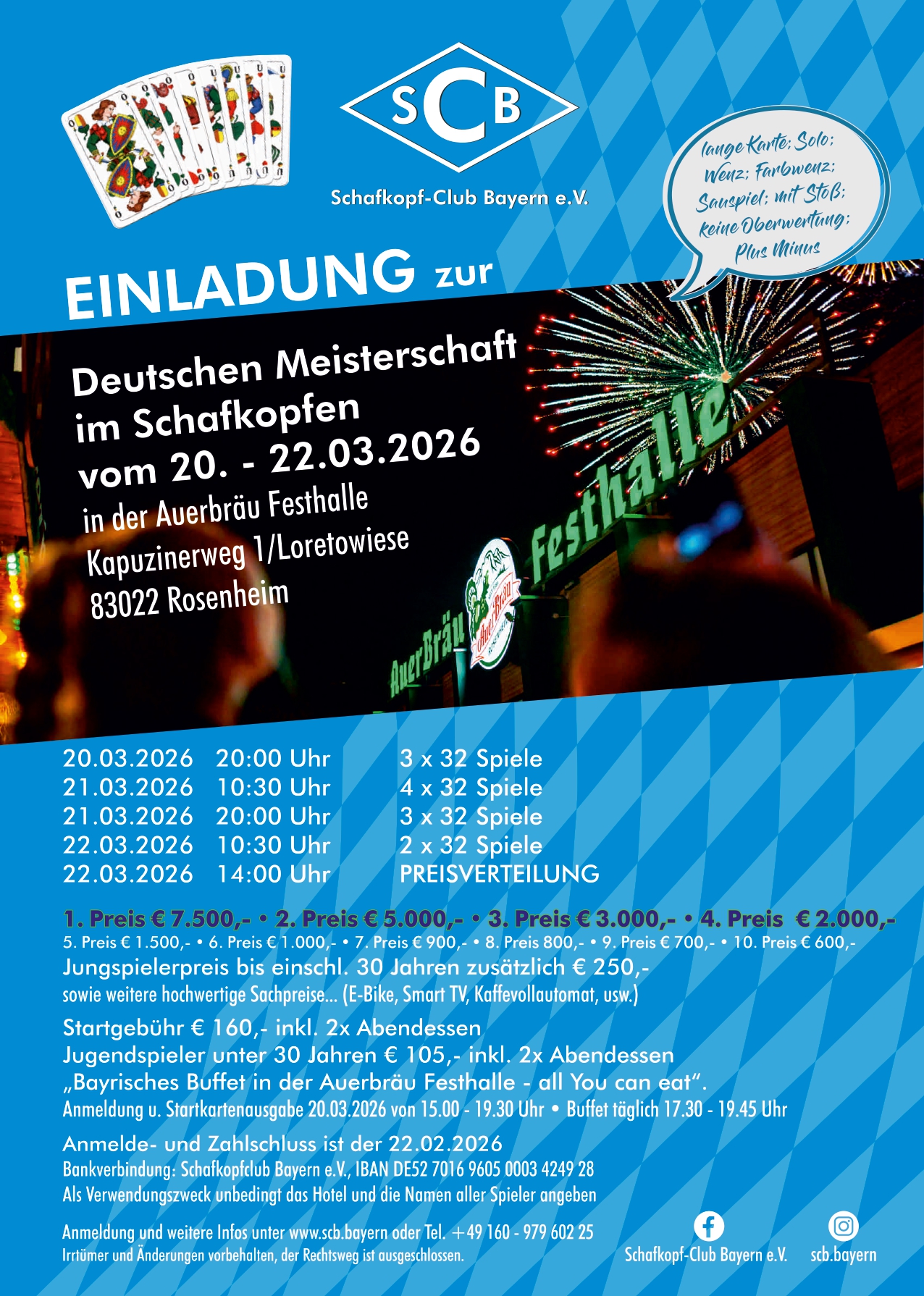 Weitere Preise richten sich nach TeilnehmerzahlSchafkopf- Turnier